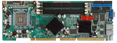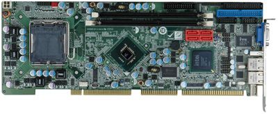 PICMG 1.0 CPU 全长卡支持 LGA775 Intel® Core™ 2 Duo, Pentium® D, Pentium® 4 和Celeron ® D 处理器并符合 VGA 或 DVI, Dual PCIe GbE LAN 和 3.0 Gbps SATA II 接口