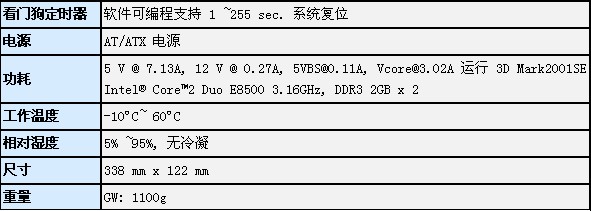 - 双 Intel® GbE 以太网, 四个 SATA II, 两个 RS-232 串口接口