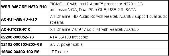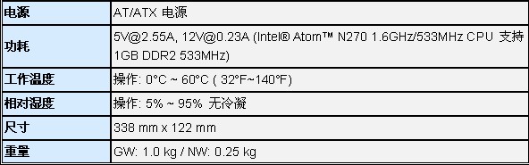 - Intel® Atom™ 处理器 N270 at 1.6GHz 核心速度支持 533MHz FSB 和 512KB L2 缓存