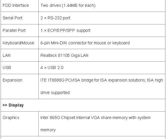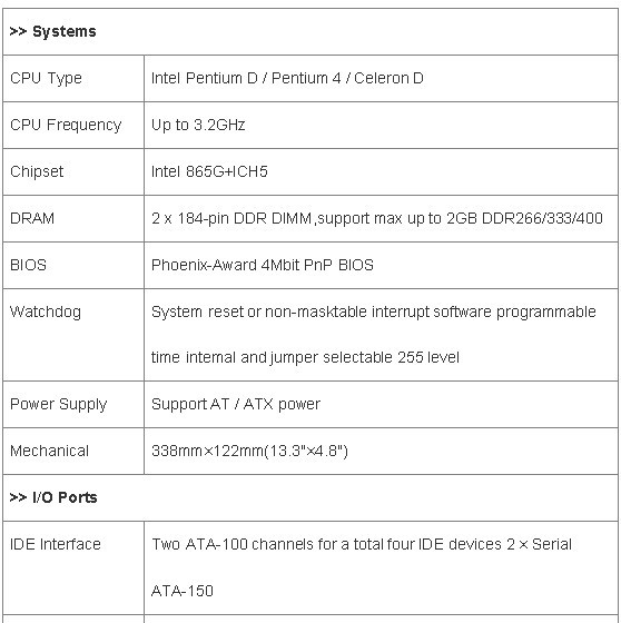 ·Equipped with Intel 865G with ICH5 FSB 533/800 MHz