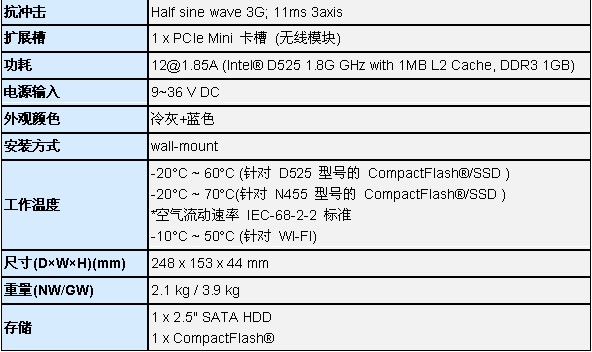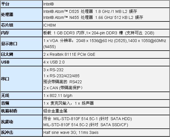 Intel® Atom™ D525 双核无风扇嵌入式系统