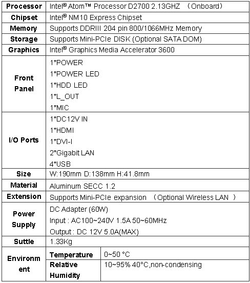 · Intel® Atom™ Processor D2700