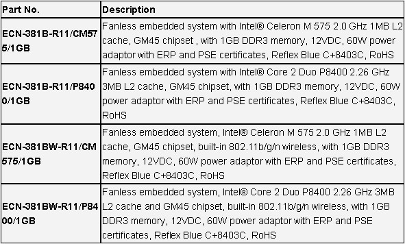 Intel ® Socket P Core 2 Duo无风扇多媒体控制器