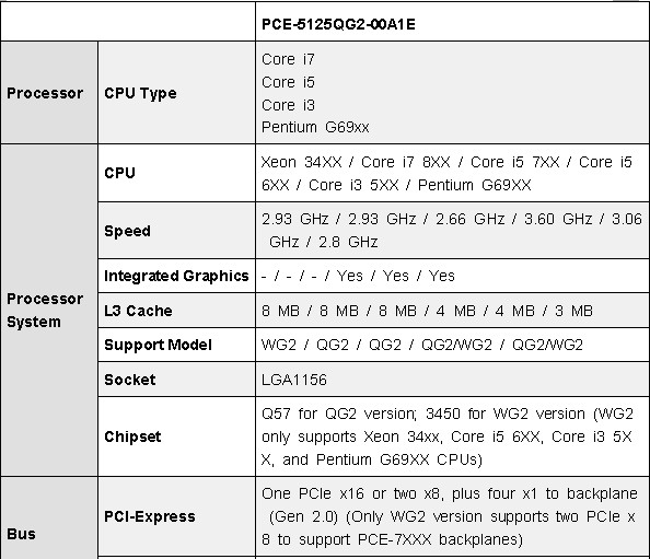 PCE-5125WG2-00A1E LGA1156 3450 FSHB with ECC DDR3/Core i7/VGA/2GbE