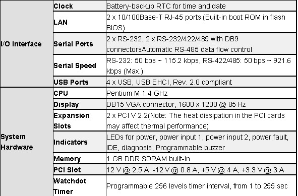 - 板上集成Celeron M 1 GHz或Celeron 600 MHz处理器