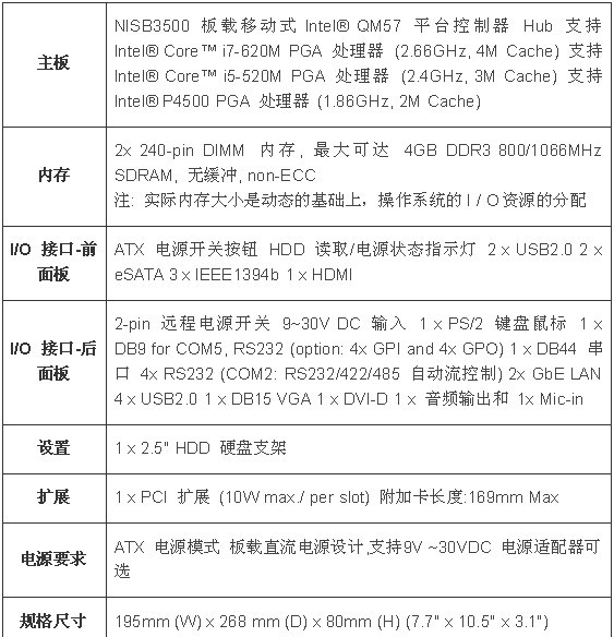 新汉无风扇工业计算机NISE 3500M