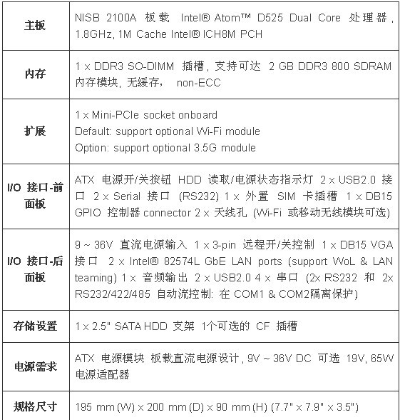 · 板载 Intel® Atom™ Dual Core D525 (1.8GHz, 1M Cache) 处理器