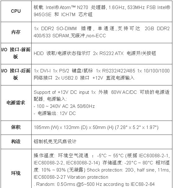 Intel® Atom™ N270 1.6 GHz 无风扇工业计算机(fanless pc)