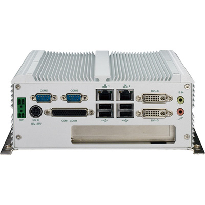 Intel® Core™ 2 Duo / Celeron® fanless barebone system with dual DVI-D display output and one PCI expansion slot