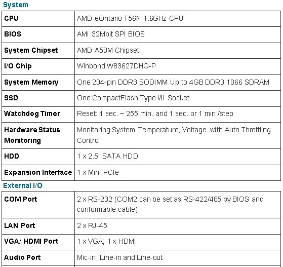 • Fanless & +5V Operation