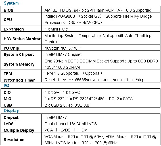 · IntelR rPGA988B (Socket G2) Supports IntelR Ivy Bridge Processors (35 ~ 45W CPU)