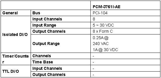 PCM-3761I带C型8通道继电器与8通道隔离数字量输入,可广泛应用于设备自动化与产线自动化中。当系统发生意外情况重新启动时,PCM-3761I的继电器可以保持输出值。PCM-3761I输入通道支持2,500 VDC隔离和5 ~ 30V宽范围输入电压,因此能够抵抗浪涌和噪音干扰。PCM-3761I基于先进的PCI-104标准,具备可堆叠、高速、抗振等性能,更加适合于嵌入式应用。